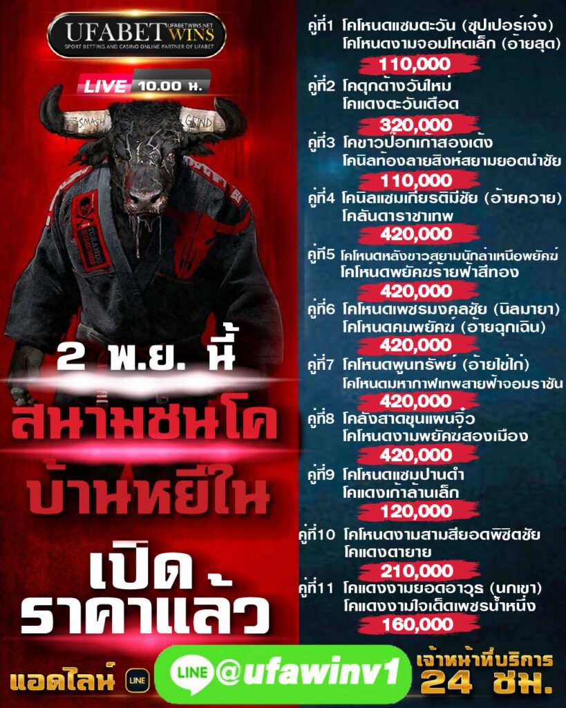 โปรแกรมวัวชน วันพุธ ที่ 2 พฤศจิกายน 2565